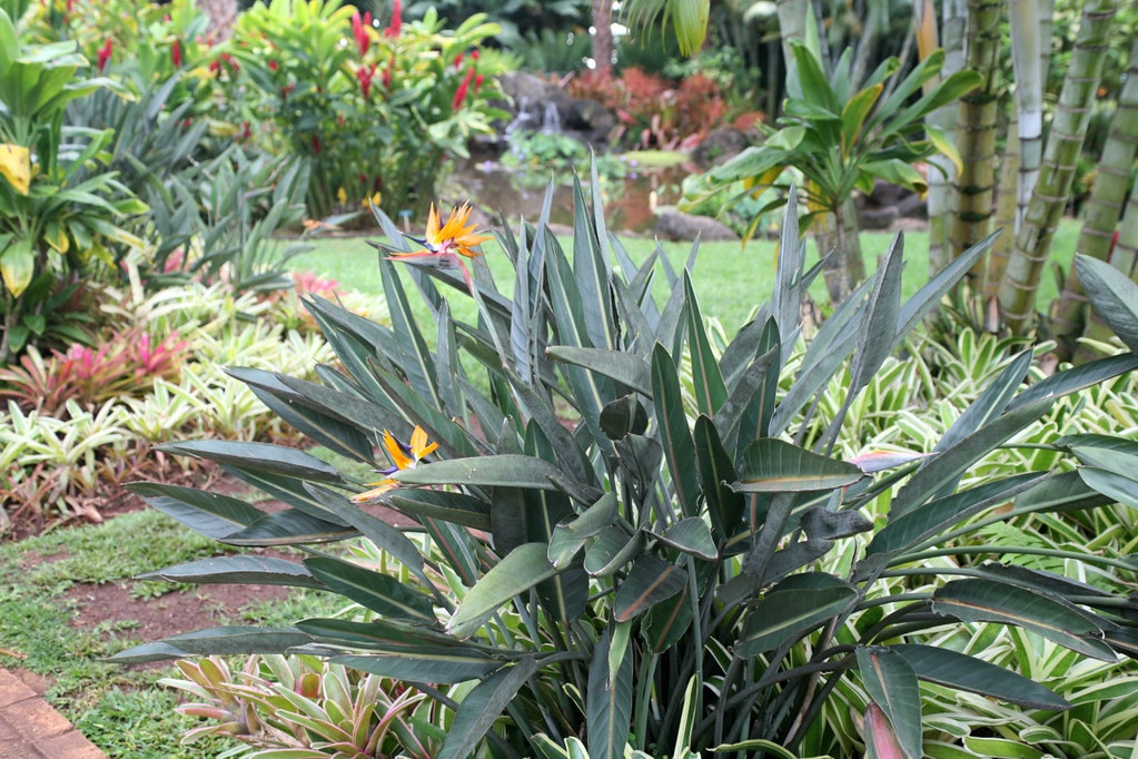 Bird of Paradise Flower is a clumping tropical plant native to South Africa. Its large gray-green leaves arise from underground rhizomes. It is best known for its large unusual inflorescence that resembles a bird's head. It blooms intermittently throughout the year.