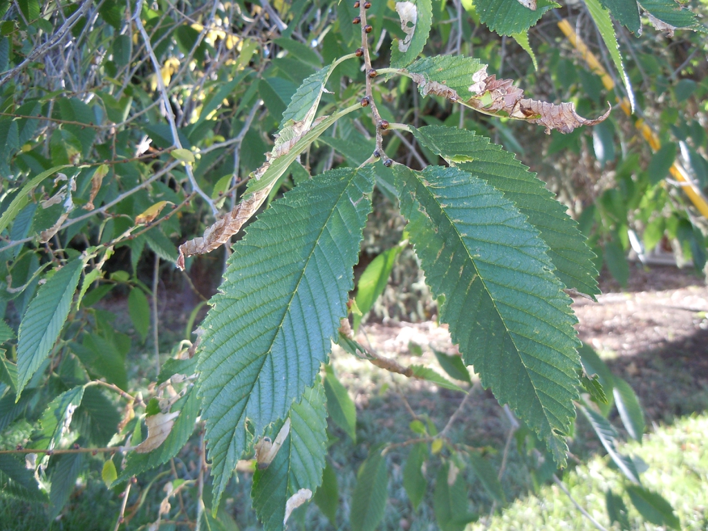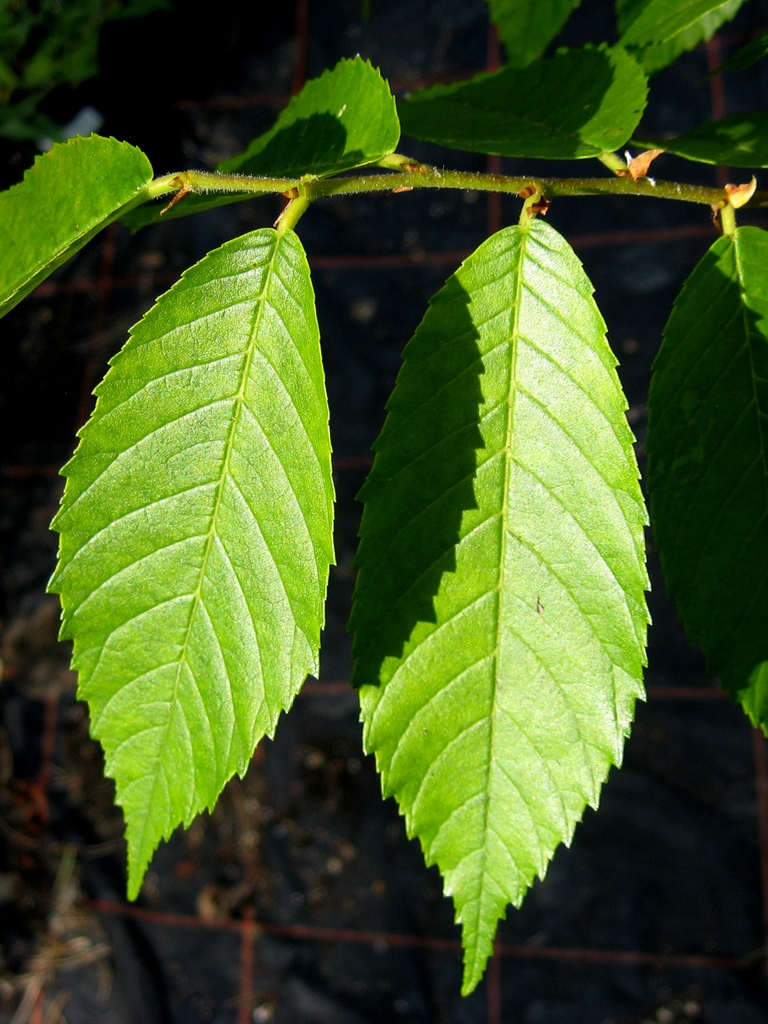- The leaves are alternate, with simple, single or most commonly, doubly serrate margins, usually asymmetric at the base and acuminate at the apex. Non-showy fall color.