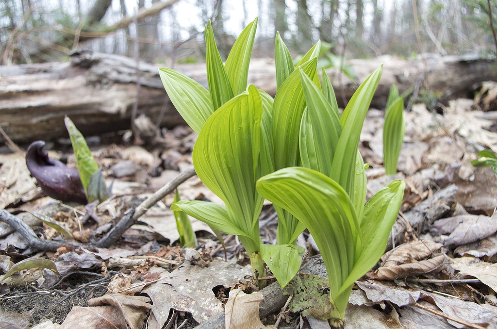 False hellebore is a native, erect, herbaceous perennial wildflower found in the mountains of NC. It is a member of the trillium family (Melanthiaceae). It grows in swamps, wet woods, meadows, forest or natural areas in moist woods and along stream banks. All parts of the plant are poisonous if large amounts are ingested. The nectar is likely toxic to honeybees.