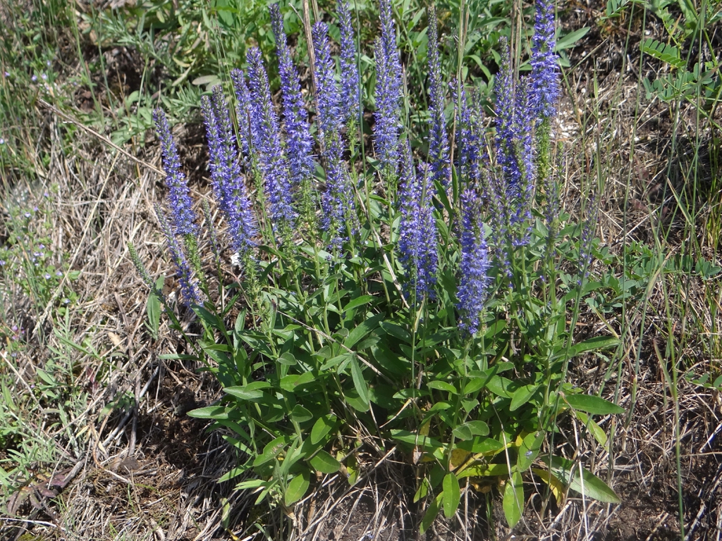 - Terminal racemes appear in summer on 24 - 30 inch stems with many tiny blue star-shaped flowers. Spikes narrow at the tips.