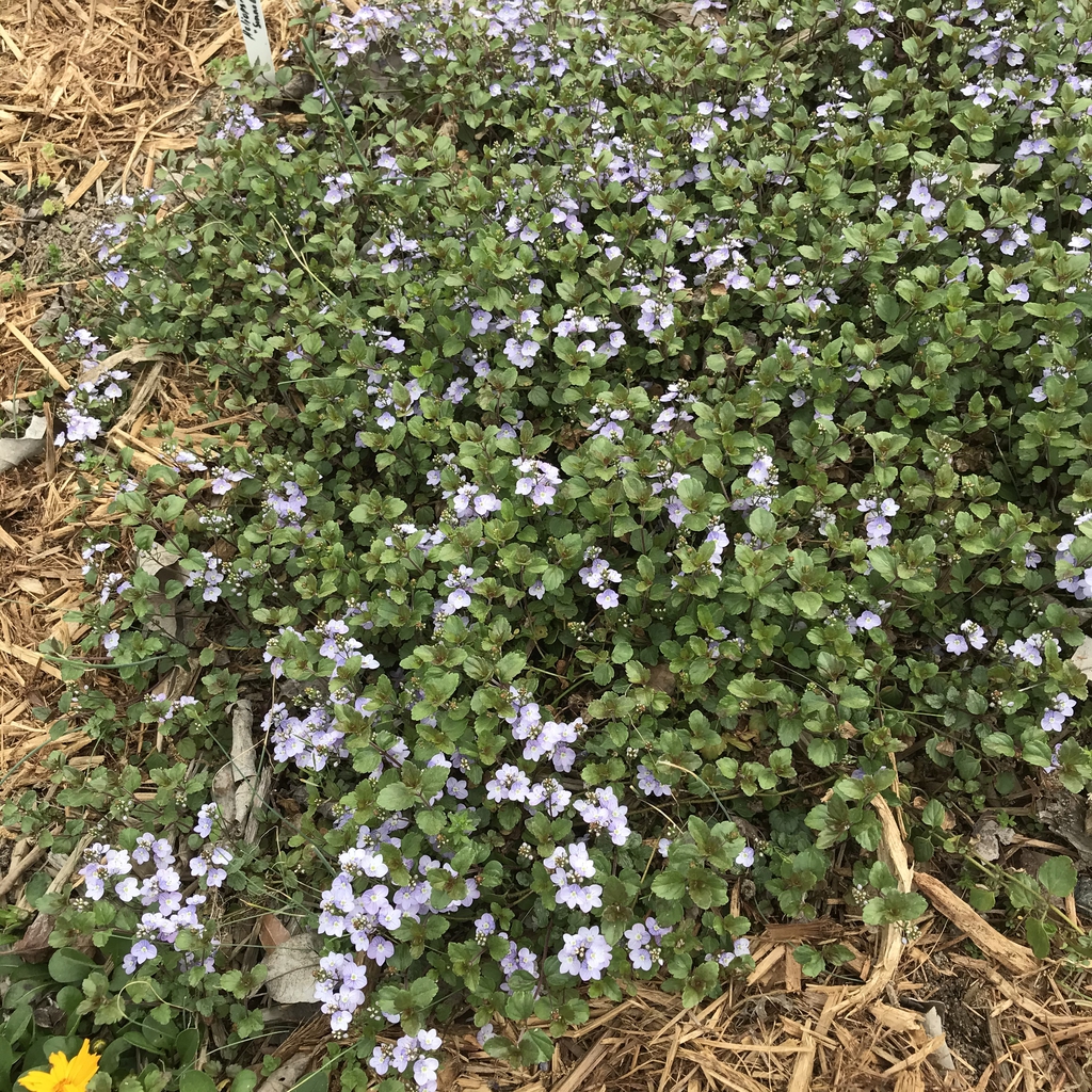 Creeping Speedwell is a low growing evergreen groundcover that grows up to 5 inches high and 15 inches wide. The dainty lavender-blue, dark-veined flowers with white eyes stand out against the dark green leaves. The leaves will be tinged with burgundy especially in spring and fall. It will tolerate some foot traffic and is deer and salt tolerant.