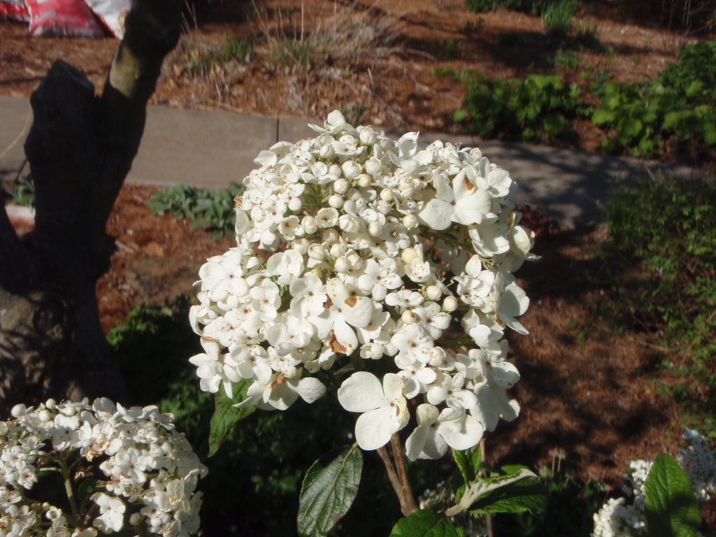 - Showy white flowers appear in spring on 4-5 inch wide clusters. Individual flowers are both sterile and fertile with 5 petals,