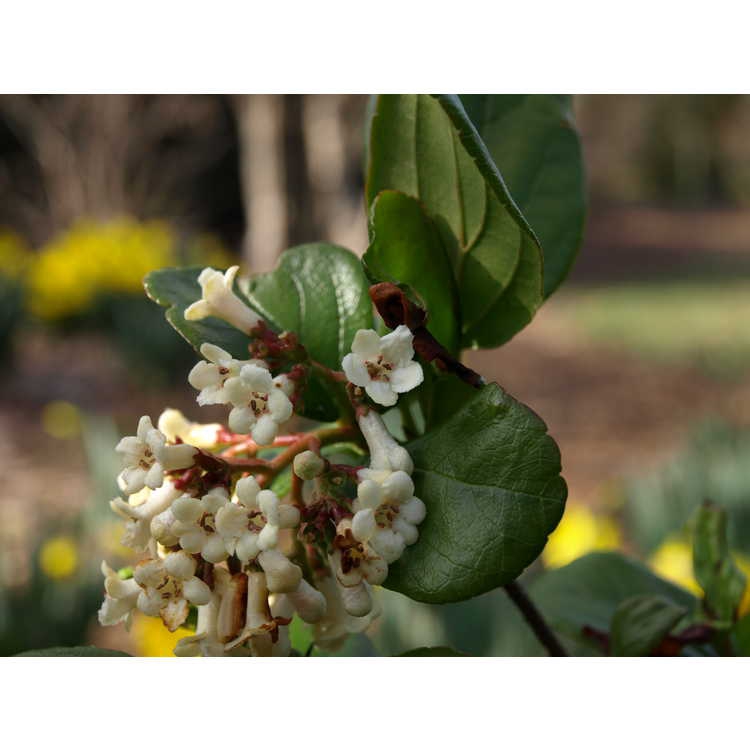 - Fragrant pinkish-white tubular flowers in 2-4 inch clusters in late winter to spring.