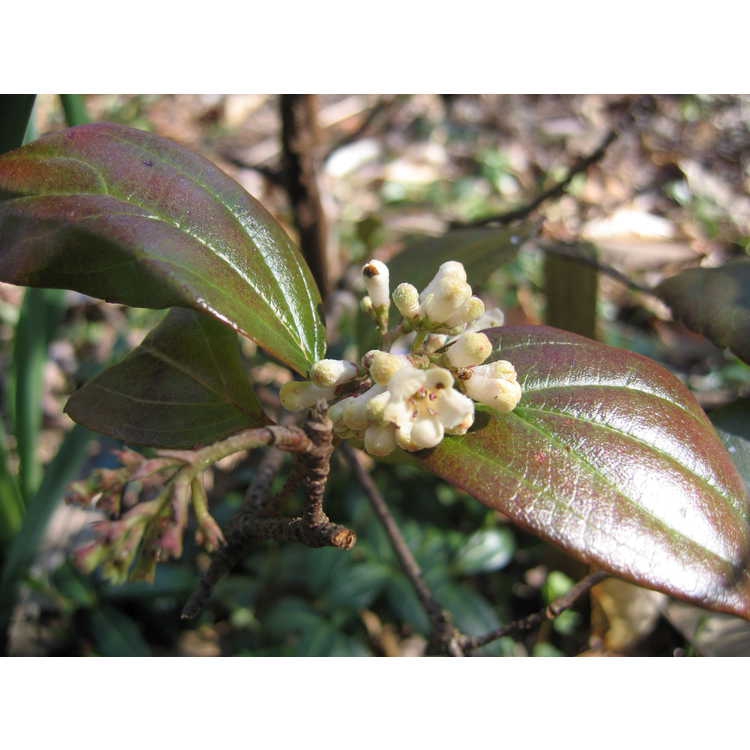 This evergreen viburnum is native to Okinawa and other Japanese islands. It is a popular landscaping shrub in Florida and other mild winter climates where it can grow up to 12 feet if left untrimmed. Pruning is recommended for shaping in spring and summer to limit fast-growing shoots. It thrives in moist, well-drained fertile soil in a wide range of daylight, from full sun to partial shade.