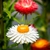 - Smalll, 1-3 cm daisy-like flowers come in yellow, orange, white, red and pink. They have yellow centers and has ridgid papery petal-like bracts that surround a bright yellow center. The bracts have a straw-like texture, hence the common name.